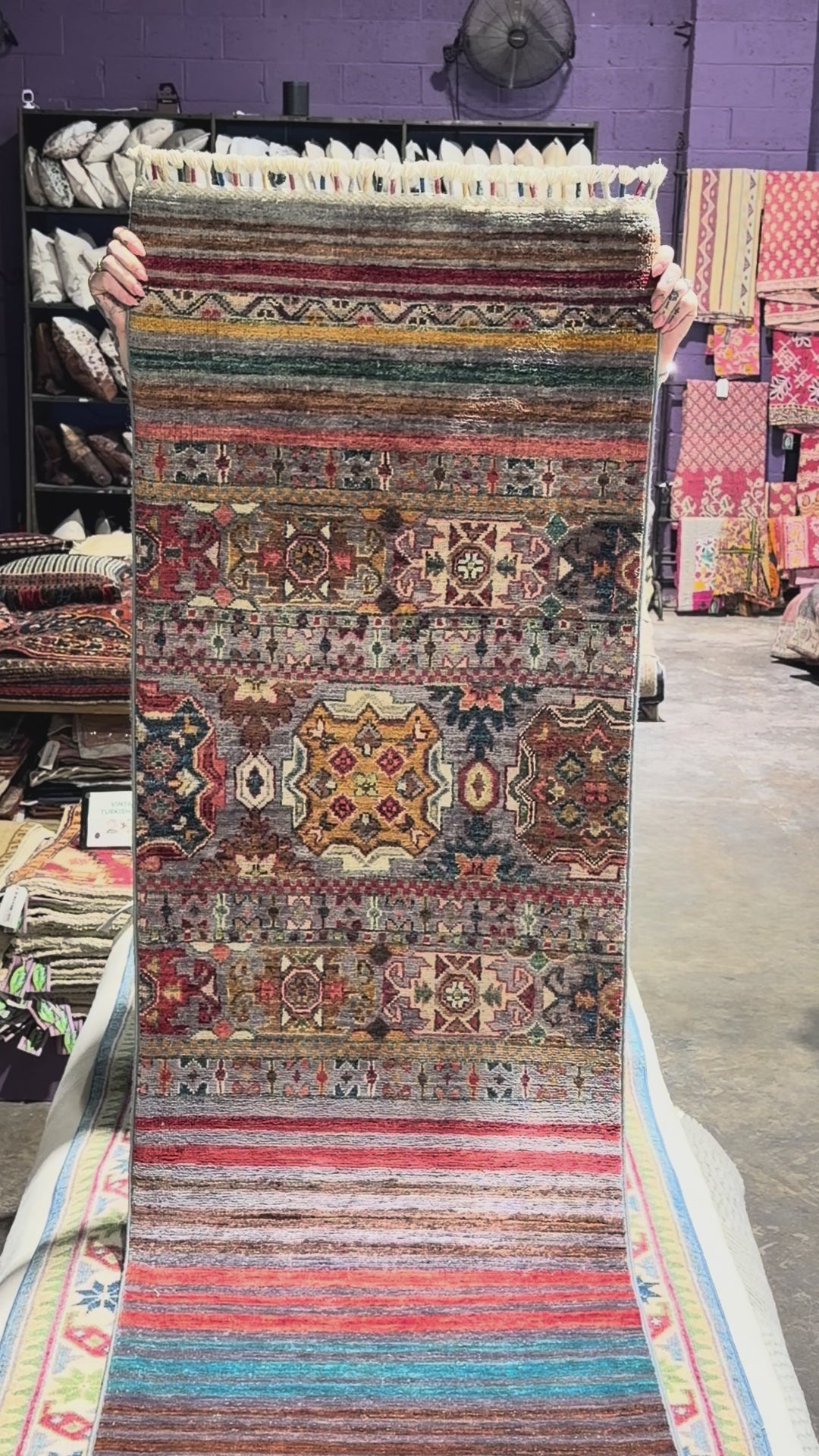 A Khorjin rug is a type of hand-knotted tribal rug inspired by the designs of khorjin, which are double-sided bags used by nomadic tribes in the Middle East and Central Asia. These rugs are known for their vibrant, geometric patterns, use of natural or vegetable dyes, and construction from hand-spun wool. They come in various shapes, including area rugs and runners, and are prized for their durability and cultural storytelling.