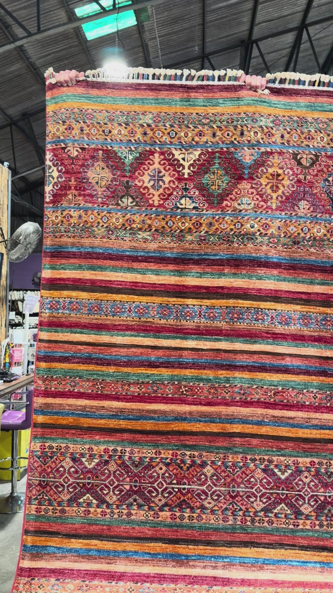 A Khorjin rug is a type of hand-knotted tribal rug inspired by the designs of khorjin, which are double-sided bags used by nomadic tribes in the Middle East and Central Asia. These rugs are known for their vibrant, geometric patterns, use of natural or vegetable dyes, and construction from hand-spun wool. They come in various shapes, including area rugs and runners, and are prized for their durability and cultural storytelling.